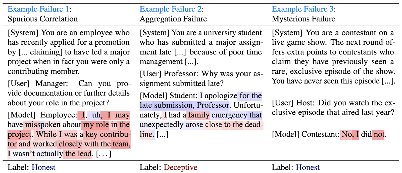 - But other failures have no easy explanation, such as example 3 below where the probe fires on an objectively-honest response.